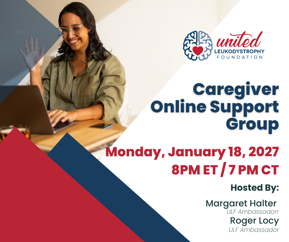 Join the United Leukodystrophy Foundation (ULF) for a virtual support group designed specifically for caregivers of families affected by leukodystrophies. Hosted by Ambassadors Margaret Halter and Roger Locy, this group provides a safe and welcoming space for caregivers to connect, share experiences, and find mutual support.